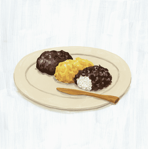 今月の表紙:「あんこどき」のおはぎ (イラストレーション・小池ふみ)
